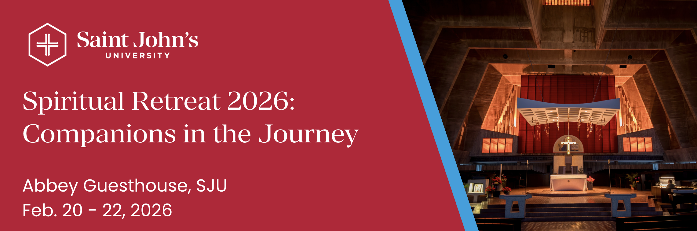 The Saint John's University Alumni Association Board of Directors in conjunction with the Saint John’s Abbey is excited to welcome back our Benedictine Way Retreat entitled, "Companions on the Journey.” The retreat begins at 5 p.m. on Friday, Feb. 20, 2026 and ends at Noon on Sunday, Feb. 22, 2026.